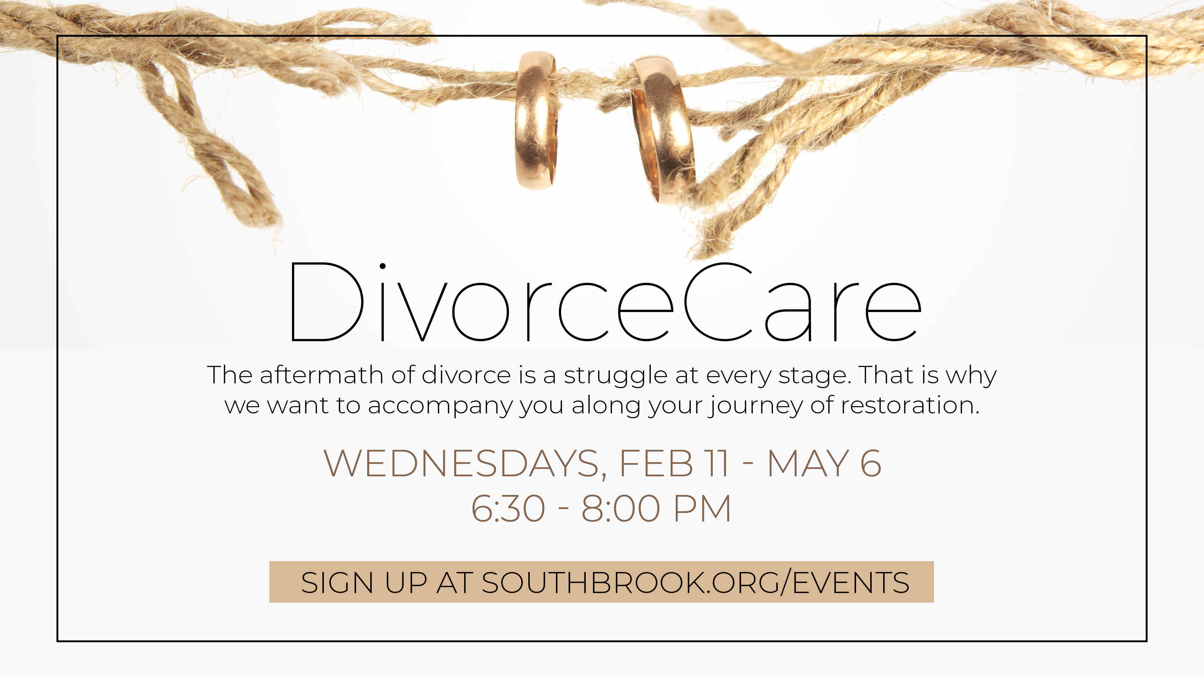 Our Divorce Care class meets on Wednesdays, February 11th - May 6th, 6:30pm to 8pm, at SouthBrook in the 3rd-5th grade room.